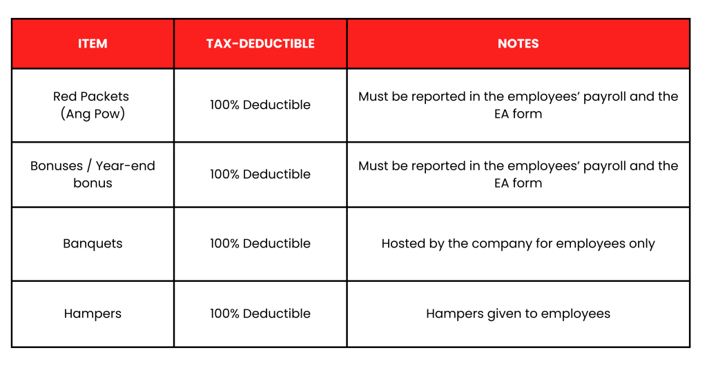 Which CNY expenses are tax-deductible under Malaysian tax law?